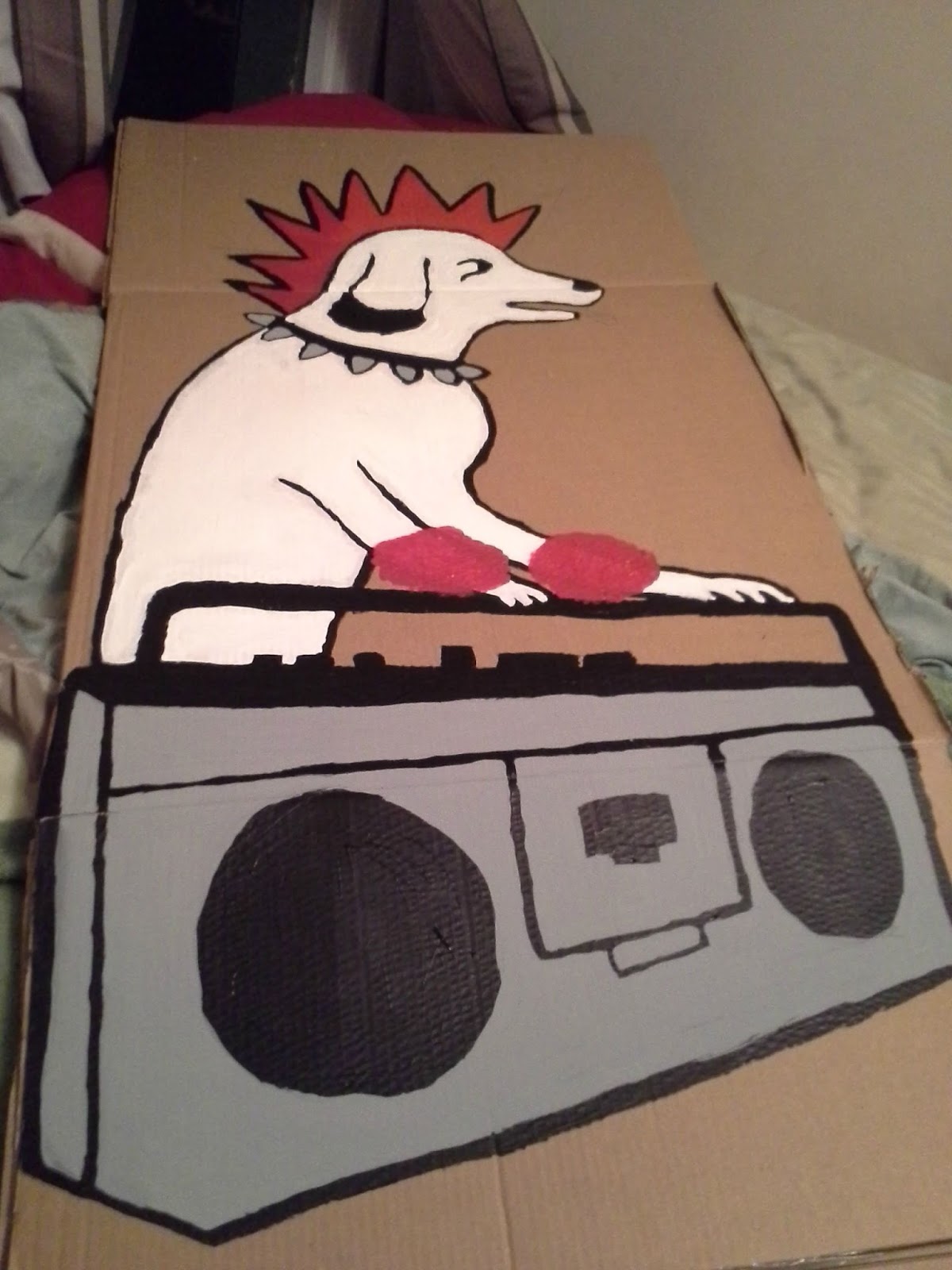 Not that I spend all of my time at home painting houses for snakes, of course. That would make me crazy. And I'm certainly not crazy, which is why my friends often rely on me to get things done for them. For example, one of my friends, a professional drag queen, was doing an Elvira act over the weekend and asked for two 4-ft.-tall cardboard cutouts of Elvira's dog posing with a boombox as stage props. Does that sound crazy to you???