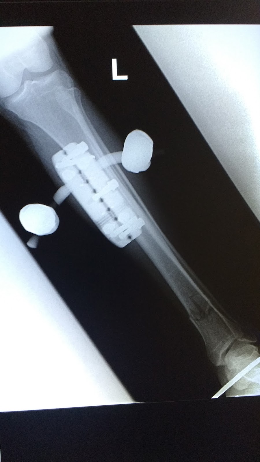 See below for a fun album of my bone being broken and then (sorta) fixed (well... stabilized, anyway) via an external fixator! (Warning: mild gore.)