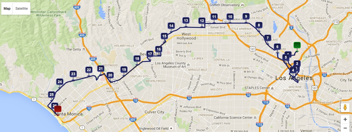 Each mile was supposed to be a Los Angeles landmark but the only ones I remember clearly were mile 7 (Silverlake, where my mechanic is), 10 (the Hollywood walk of fame), and 11 (Grauman’s Chinese Theater, featured in Iron Man 3).