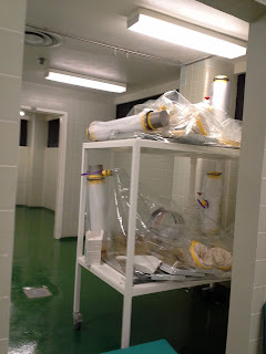 Confirmation of a successful sterilization takes a week or longer, but from this point on, any items entered must be chemically sterilized or placed into a large, metal cylinder, sealed, autoclaved, and attached and entered. It's like getting supplies into a space station.