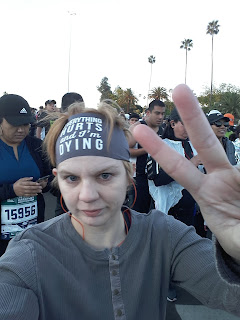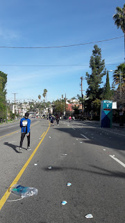 Mile 18: After two excruciating miles of pain and debating whether or not I'd finish, I got my second wind at mile 18. We were somewhere in Century City. Mile 17 was the last marker I had seen. The rest had been taken down. At this mile, there were few people left. Fat people trying to prove that "Healthy At Any Size" is a thing (it's not), people in elaborate costumes or outfits (including a guy in full trival Aztec gear and a firefighter carrying a flag), and people like me, who had suffered injuries and whose completion of the race was uncertain.