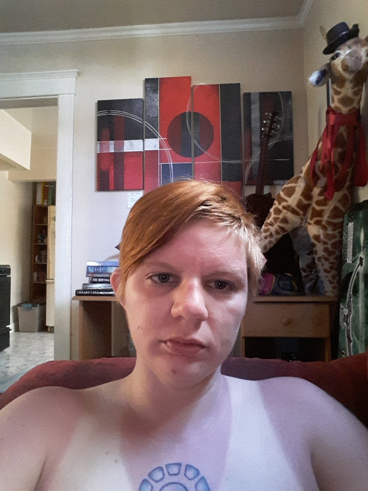 Also I discovered I'd forgotten to wear sunscreen; my skin felt too tight and my shoulders, chest, and face were all bright red and hot to the touch.