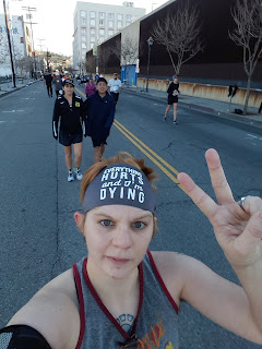 I was following other "runners" because there was no longer any real "route." The blinking traffic lights were the only indication that we were still on the right track. I pulled out my phone and checked the route to make sure I was following it, aware that, from here on out, I was on my own.