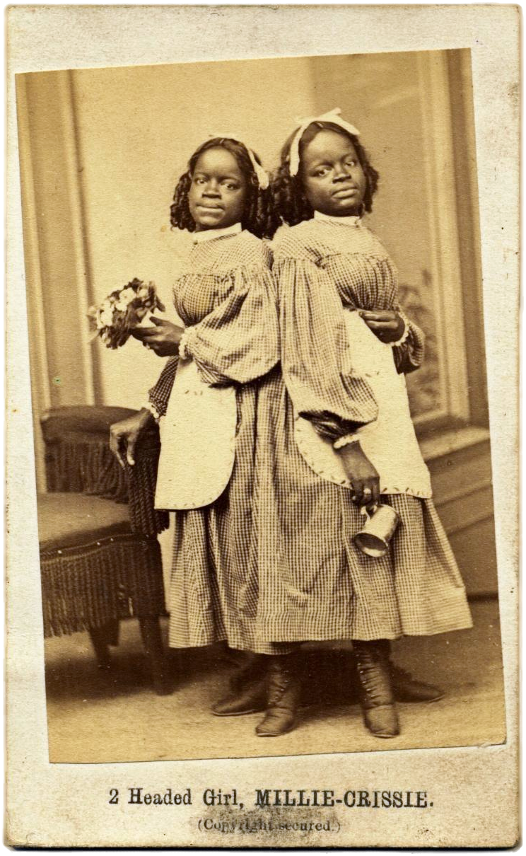 Millie and Christine were a pair of conjoined twins who made periodic appearances at Barnum's Circus between 1855 and 1875.