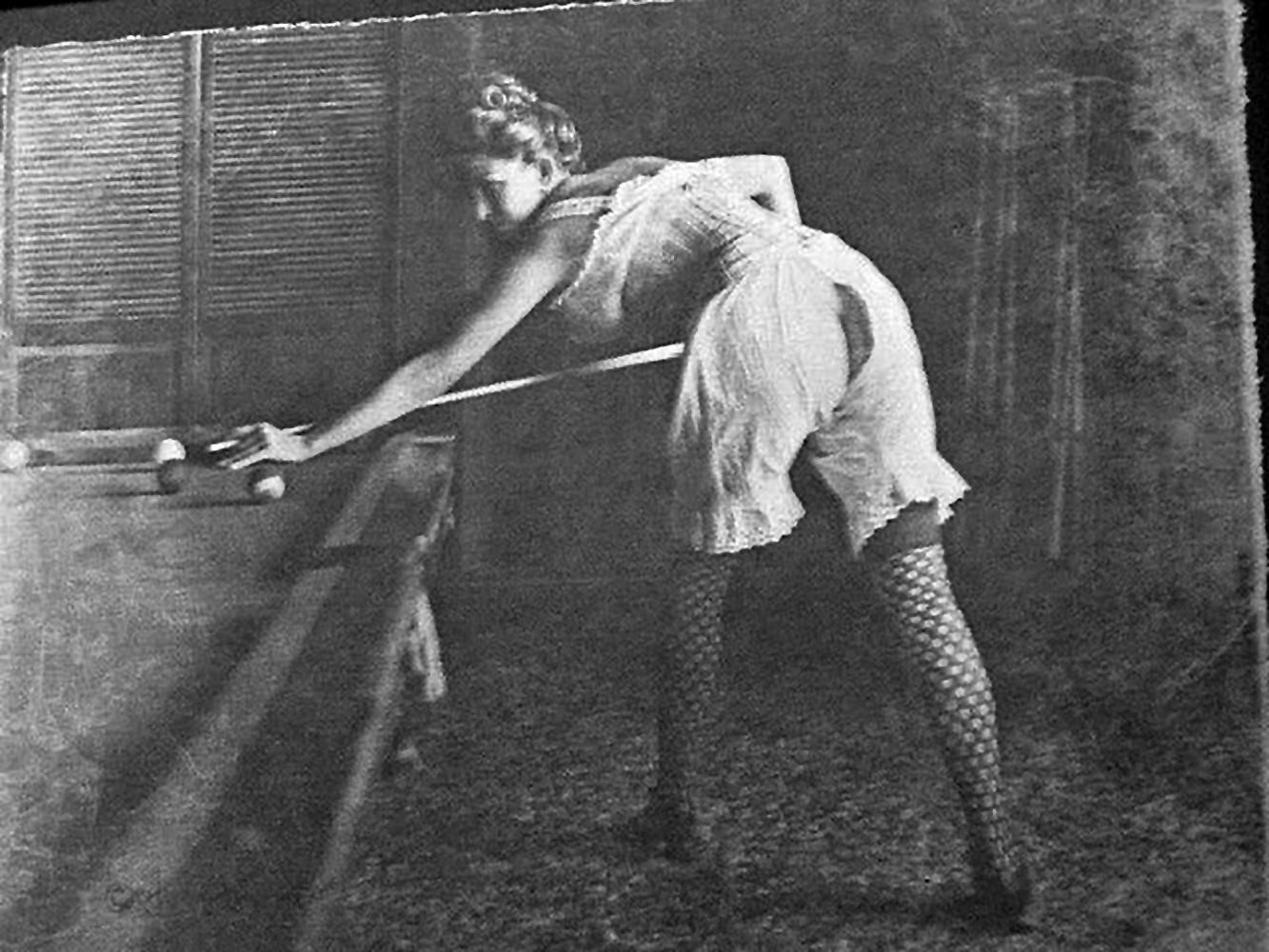 In calling cards, license pictures, and glam shots of the wild west, women hinted at their services in titillating ways. Some, for example, show women shooting pool: a distinctly un-lady-like activity, but one that would allow the woman to be featured holding a birch cane. Others include women holding lassos or whips, despite not necessarily being cowgirls. The purpose of ropes and whips was left up the imagination.